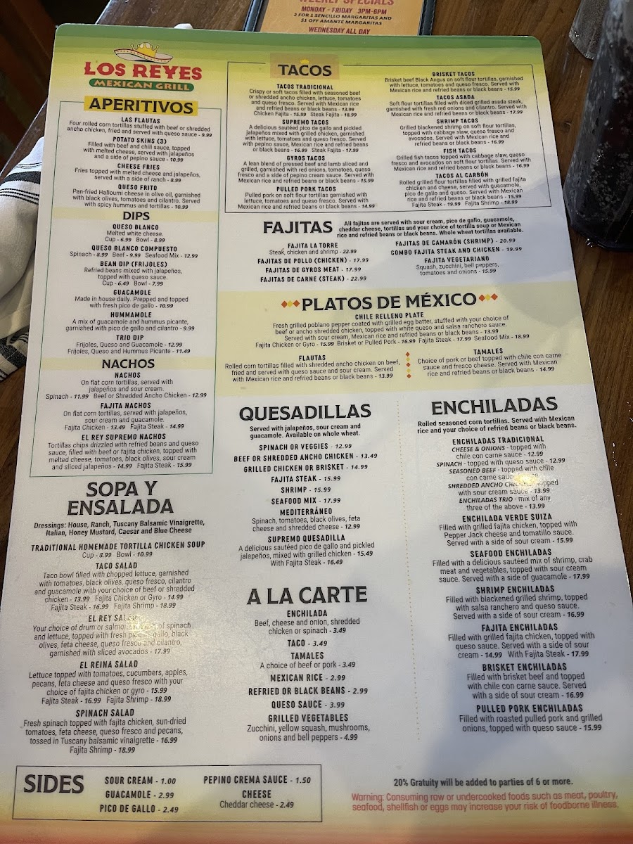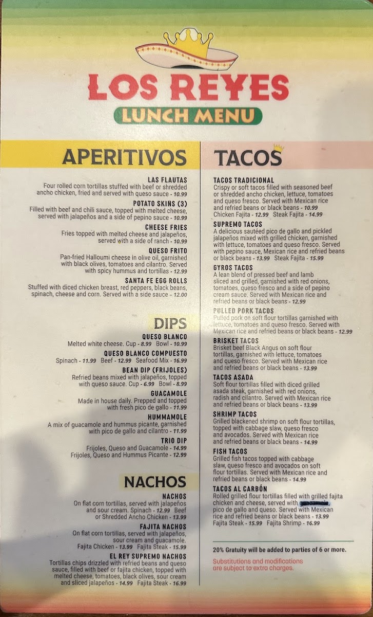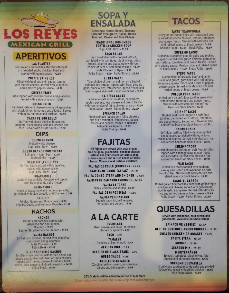 Choice of seasoned beef or ancho shredded chicken. crispy or soft garnished with lettuce tomatoes and queso fresco.